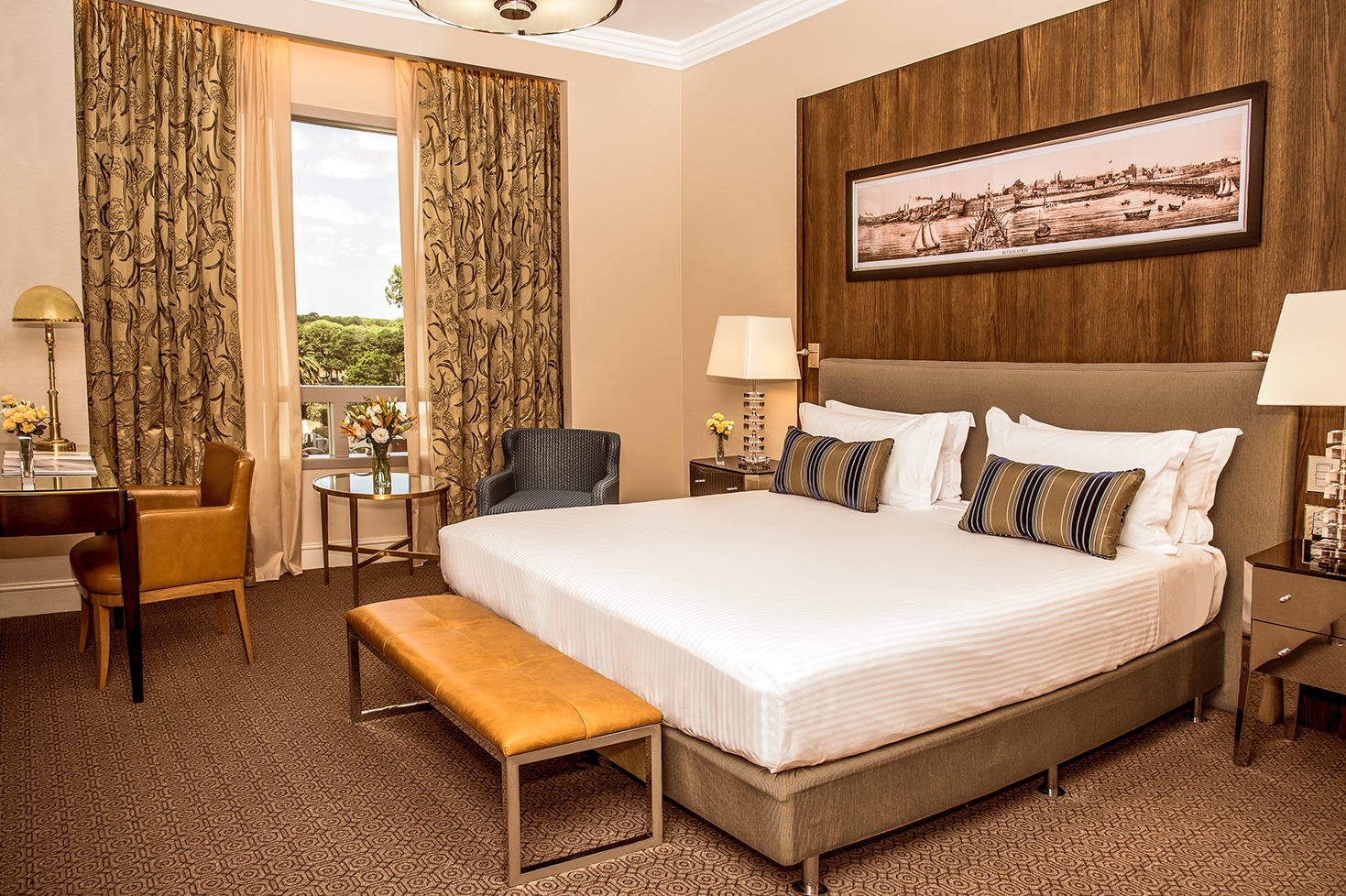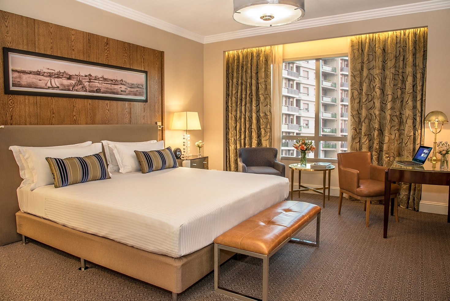The spacious Superior rooms make up an atmosphere of modern design, equipped with a comfortable desk and an armchair. The luxurious bathrooms are clad in Carrara marble and have a whirlpool tub and separate shower.